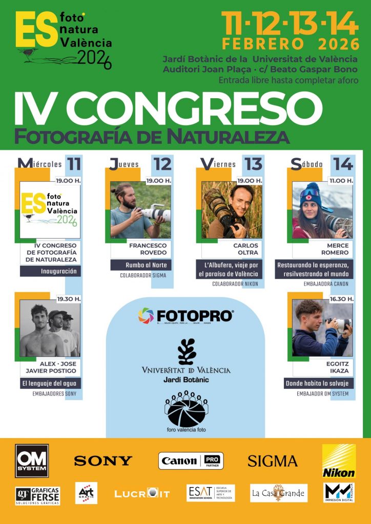 En Octubre de 2024 celebramos el III CONGRESO DE FOTOGRAFÍA DE NATURALEZA DE VALÉNCIA “Es foto, Es natura, Es València” , de la mano de Fotopro, todo un referente en la fotografía nacional.